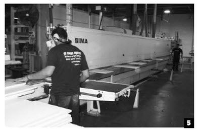 כדי לפתור את בעיית התדמית של פורמייקה נרתמה "פורמקס" להעניק לדלתות הפורמייקה מתוצרתה את הפתרונות הטכנולוגיים המיטביים. ראשית, כך מסביר לנו מיכאל קולן, מנכ"ל "פורמקס", החברה מקפידה להשתמש אך ורק ביריעות פורמייקה איכותיות ומותגיות (מתוצרת "דקופל" האירופית), כולל דגמי פורמייקה תלת- ממדיים, אשר לא רק מציגים גוונים עשירים ורבים, אלא גם מדמים תחושת מגע אמיתית, הזהה למגע של המוצר, שאותו הפורמייקה מחקה. כך, אם תיגעו בפורמייקה דמוית פורניר. סביר שתרגישו את תחושת החספוס המוכרת של מגע עם פורניר אמיתי. מכאן פעלה החברה על-פי משנה טכנולוגיות סדורה, שלב אחר שלב; בשלב הראשון רכשה "פורמקס" שתי מכונות קנטים משוכללות מתוצרת IMA בהשקעה של כ-350 אלף יורו (תמונה 5). המכונות עובדות אוטומטית באמצעות מערכת כוונון מבוקרת מחשב, ללא כל מגע יד אדם. מכונות אלה עובדות אך ורק עם דבק דו-רכיבי על בסיס פוליאוריתן וכל חישוביהן מתבססים על דבק זה. המכונה מורחת אותו בשכבה דקה מאוד ואחידה.